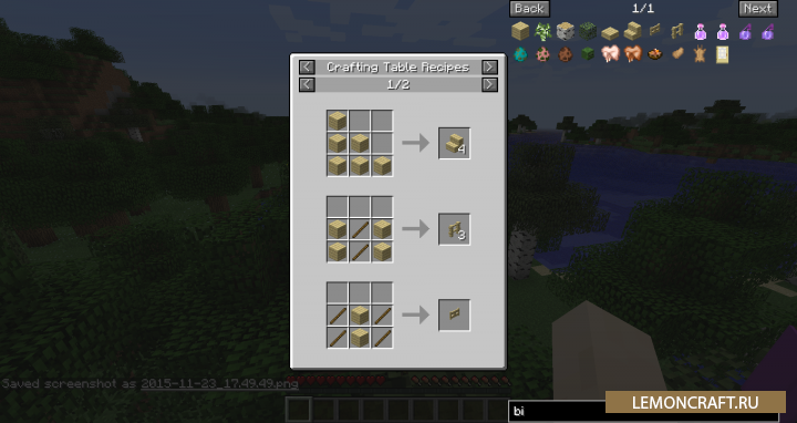 Мод Just Enough Items (JEI) добавит в игру новый интерфейс, который отличается от NEI и TMI тем, что у него нет читерских функций (вкл. откл. дождя, ночи, дня, нельзя менять режим игры и т.д.). Так же JEI может показать вам рецепты обычных предметов и зелий, это основное преимущество перед другими модами такого типа. Еще одна полезная функция данного мода - автоматический крафт вещей в режиме выживания (при условии, что у вас достаточно ресурсов). Ну последнее, данный мод отображает рецепты в установленных модах, что позволит с легкость разобраться в их работе.